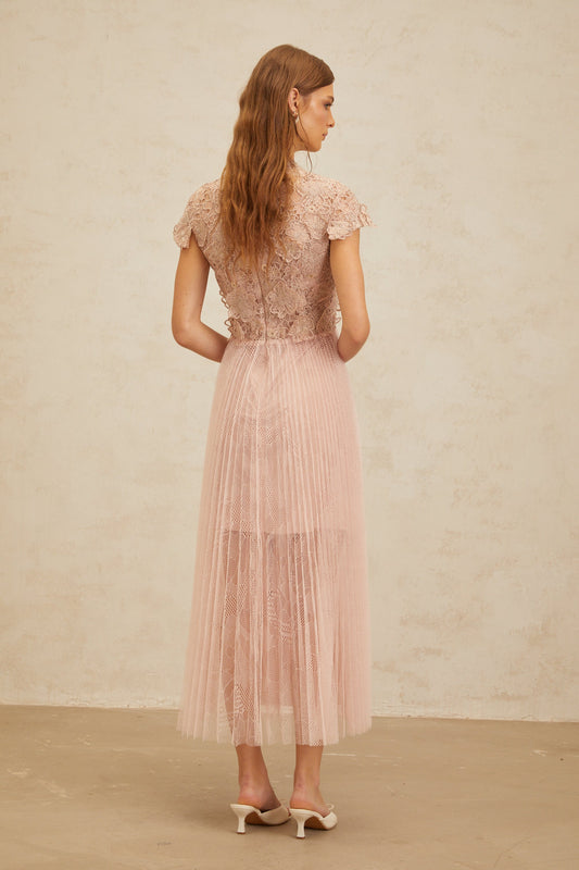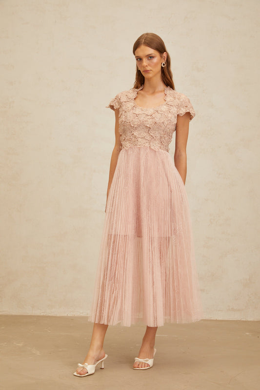 Airelle Pink Floral Embroidered Tulle Midi Dress