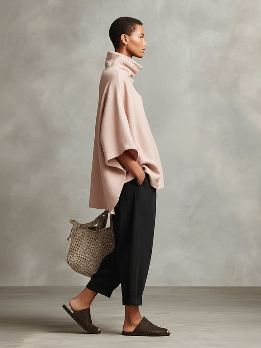 A pink linen blend two-piece suit with a relaxed straight leg. It’s casual yet chic for everyday wear.