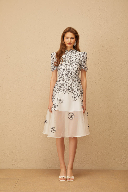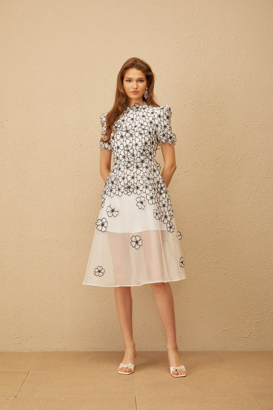 Yaelle White Floral Appliqué Tulle Midi Dress