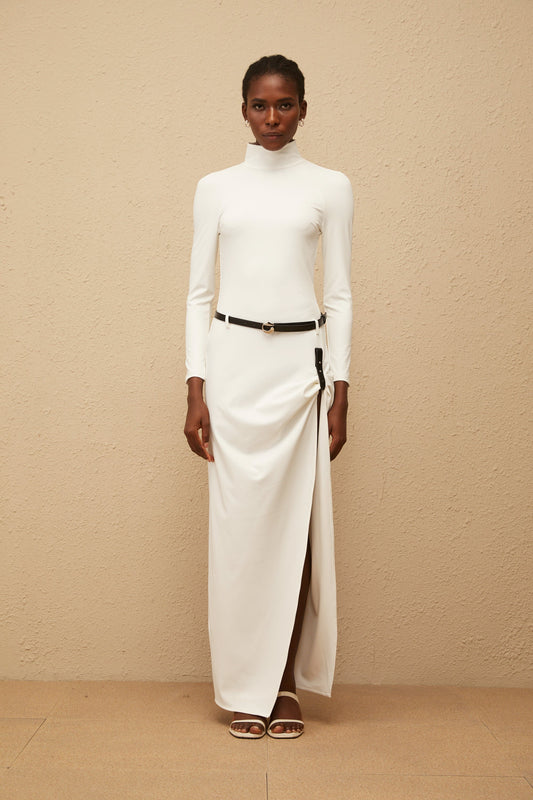 Zephyrine White Gathered Open-Back Maxi Dress
