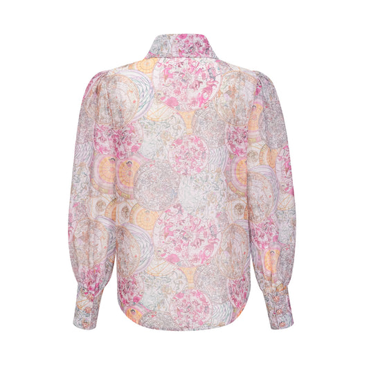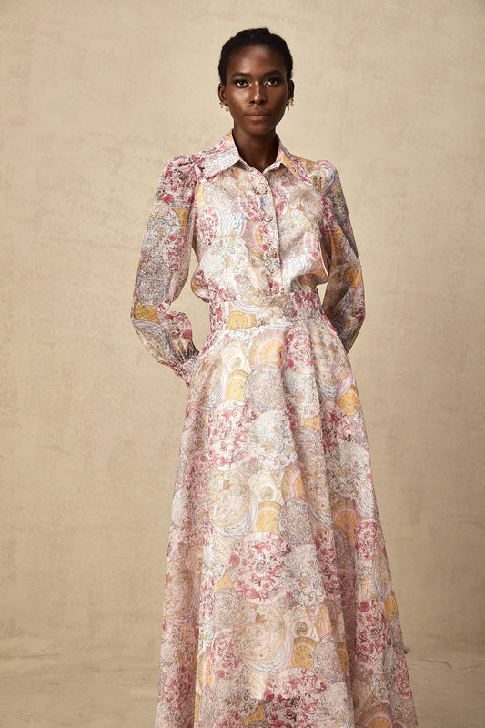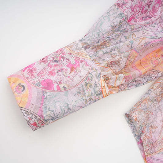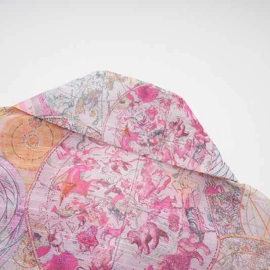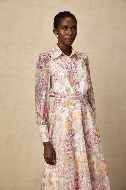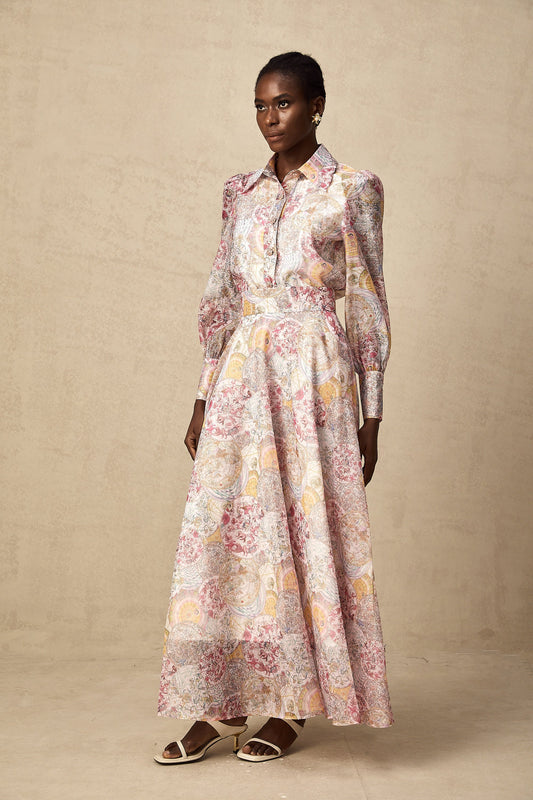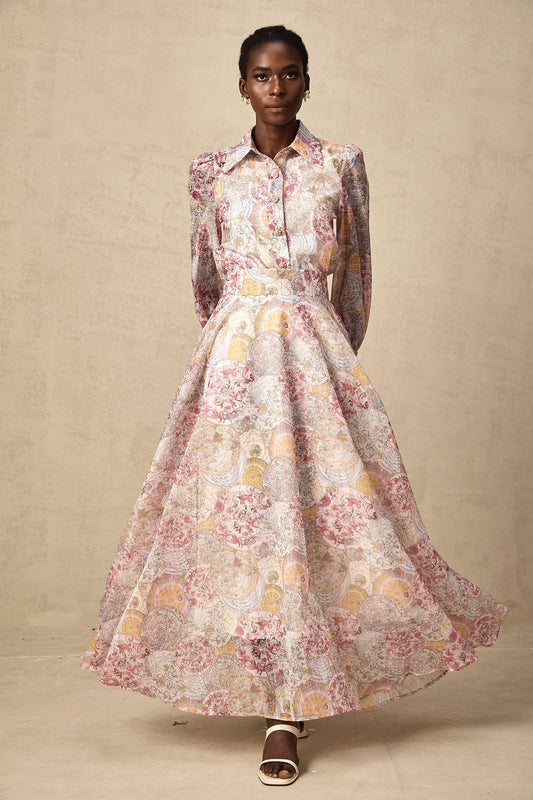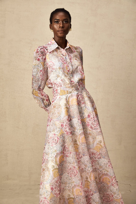 Cherry pink pattern-print shirt & skirt matching set