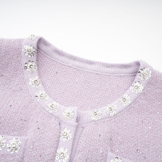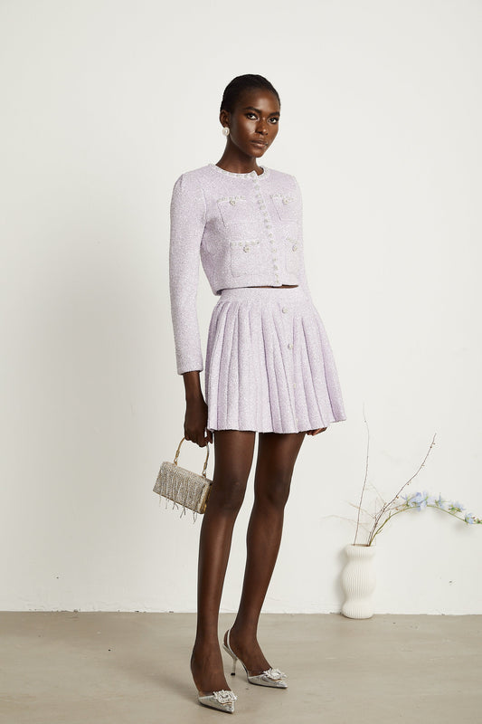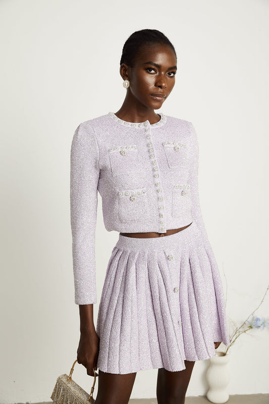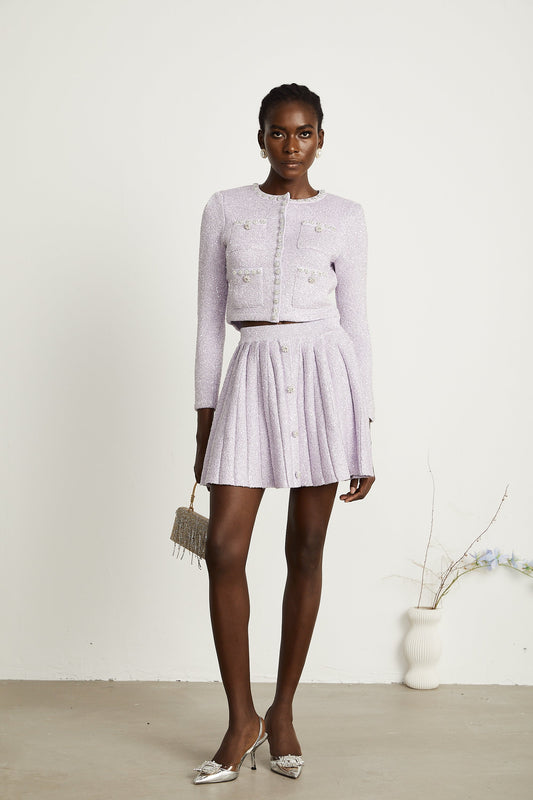 Fabienne purple sequin-detail jacket & skirt matching set