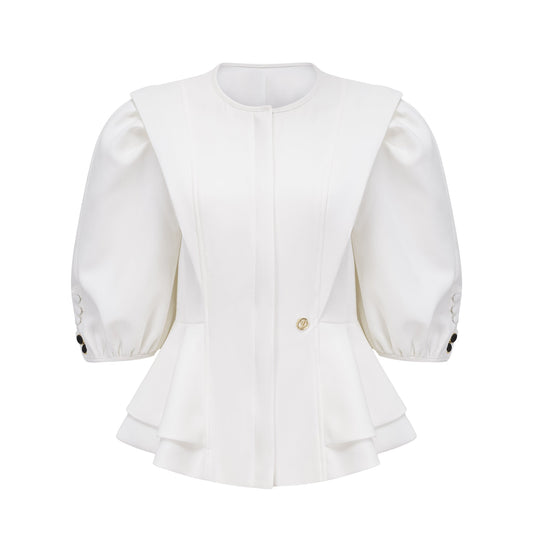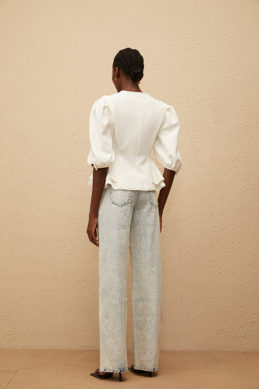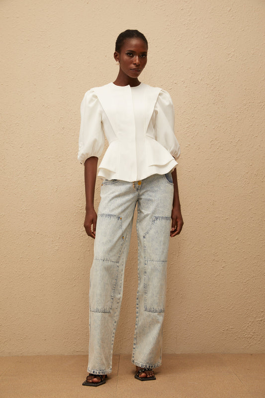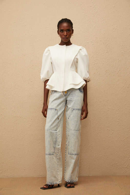 Gwenaëlle White Peplum Waist Blouse