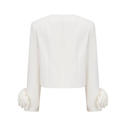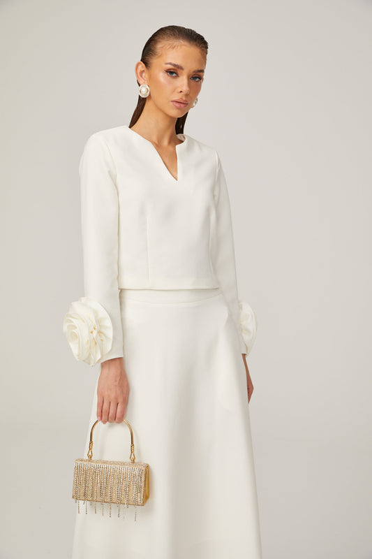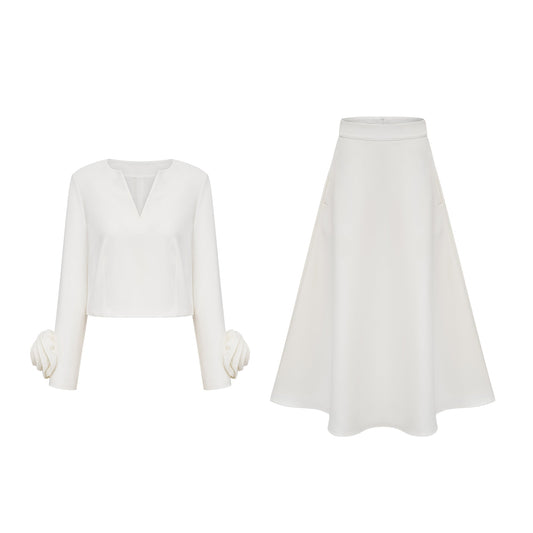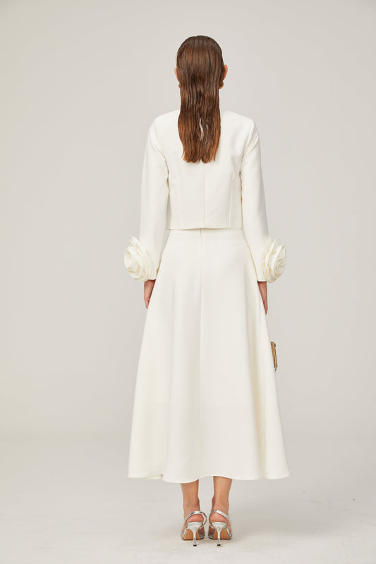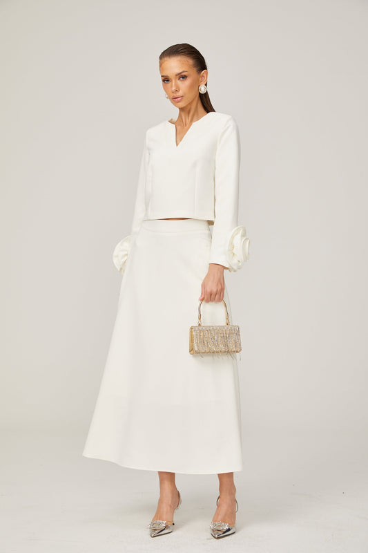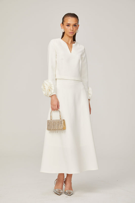 Hilaire white 3d-petal top & skirt matching set