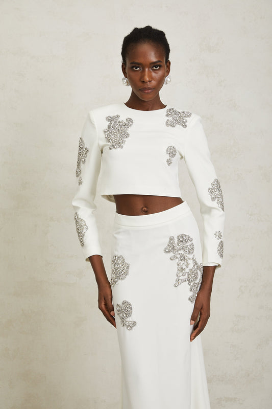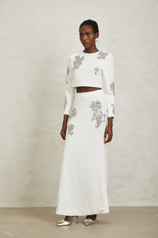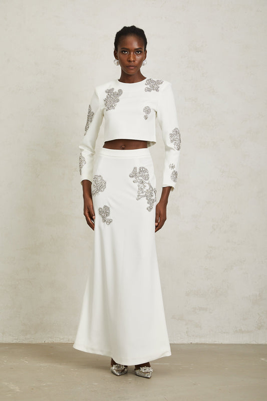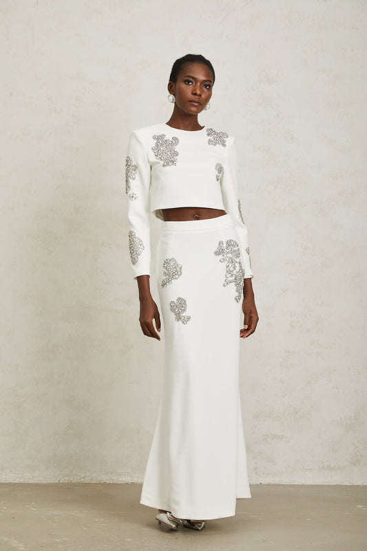 Luna White Crystal Embellished Top & Skirt Set