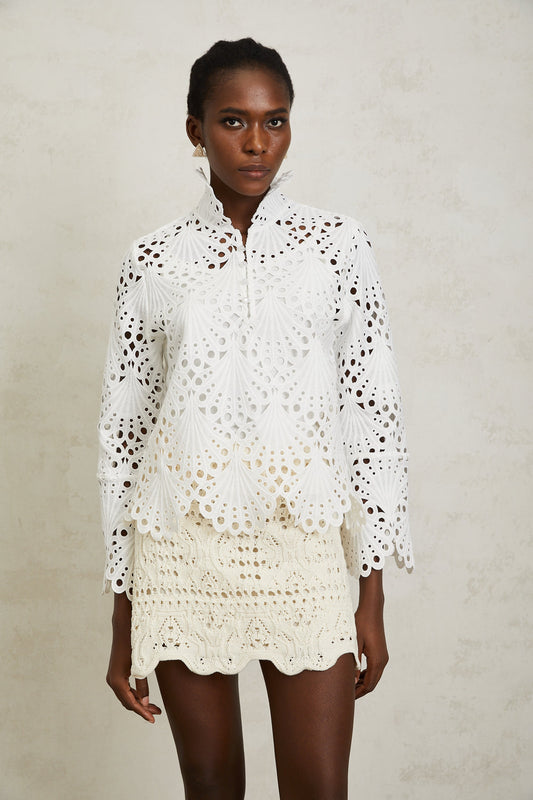 Wilhelmine White Corded Lace Blouse