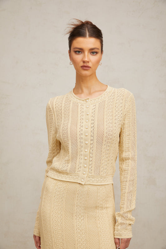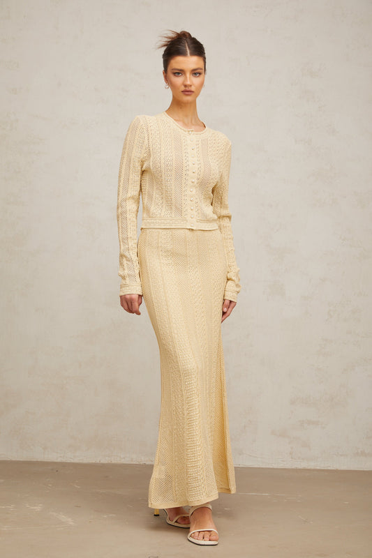 Tiphaine pointelle-knit cardigan & skirt matching set