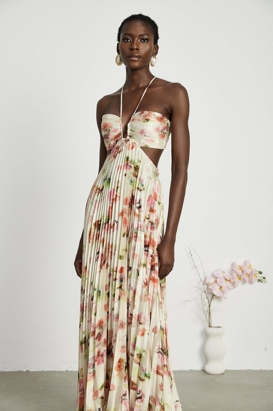 Andréa cut-out floral-print pleated maxi dress
