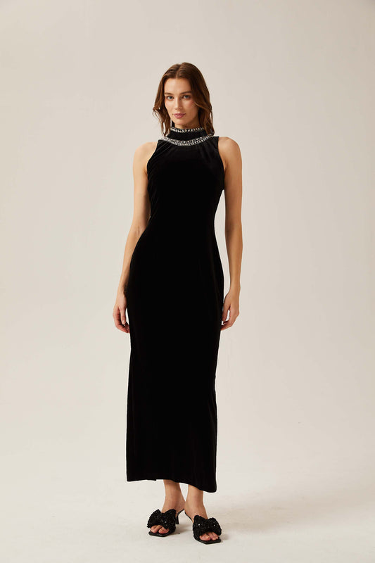 Colette black crystal-embellished velvet gown