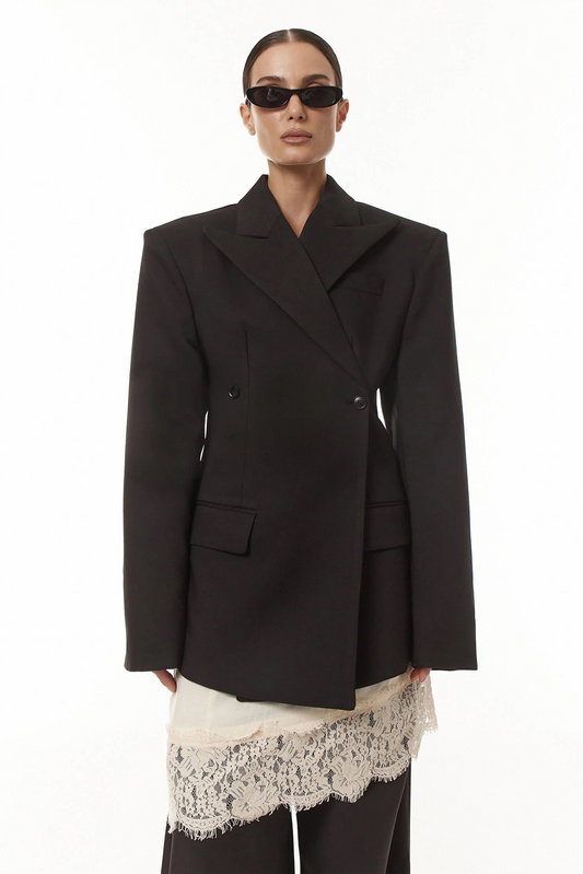 Dianthe Black Double-Breasted Oversize Blazer