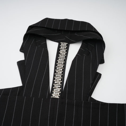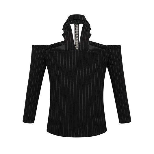 Stefania black striped open-back blazer