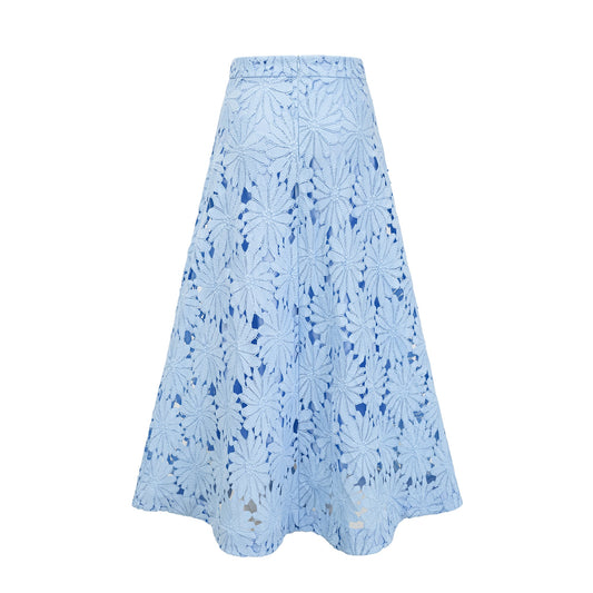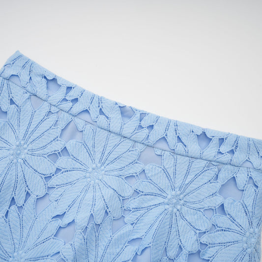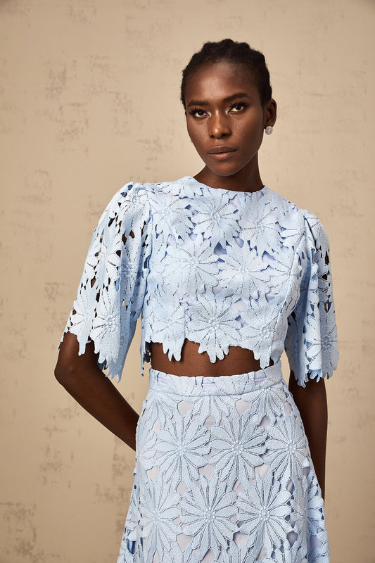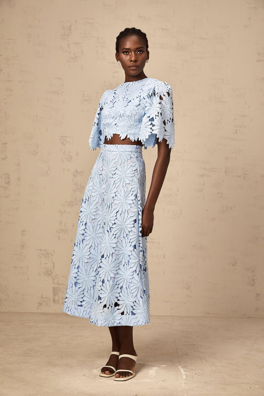 Audrey blue guipure-lace top & skirt matching set