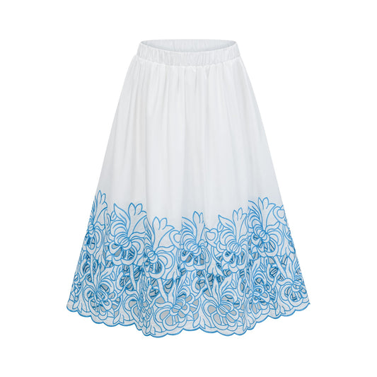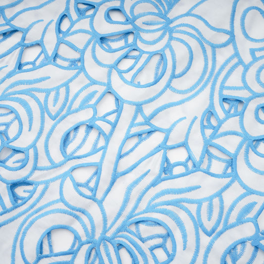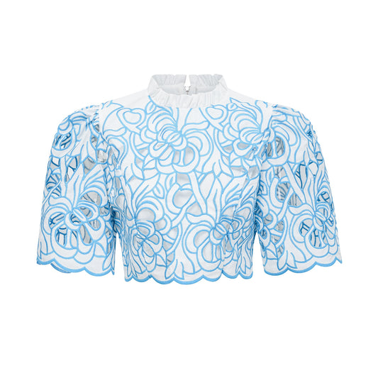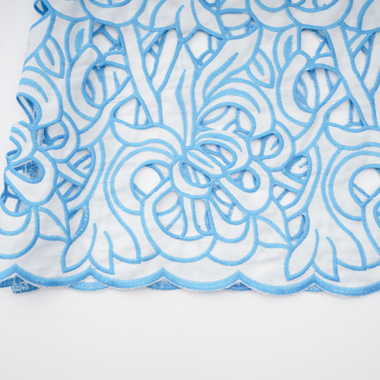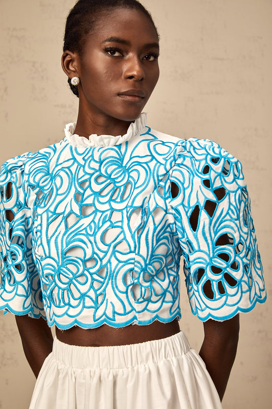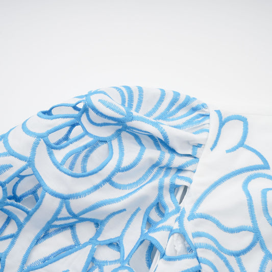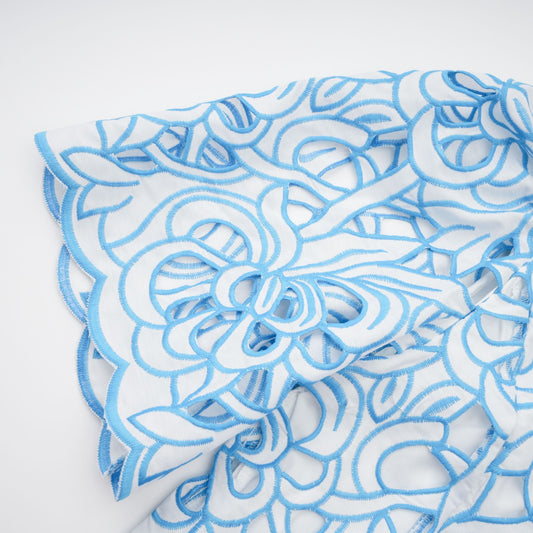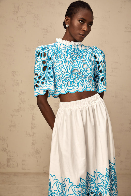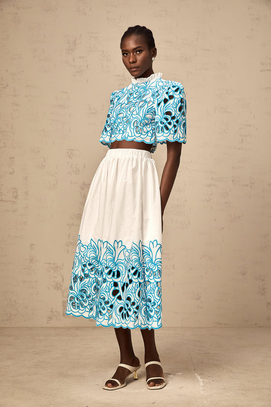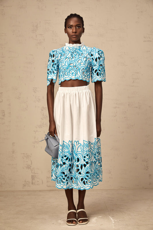 Aurore blue cut-out embroidered top & skirt matching set