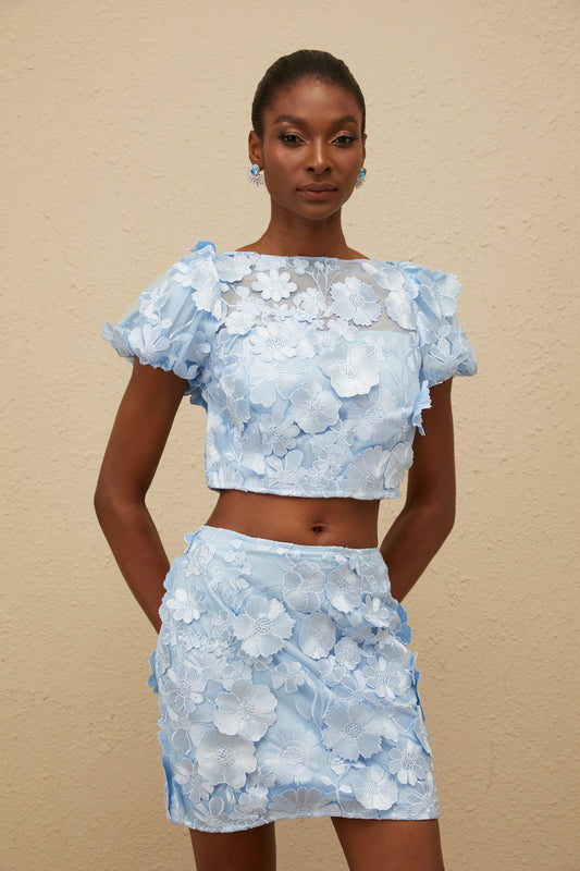 Caméo Blue Embroidered 3D Petal Co-ord Set