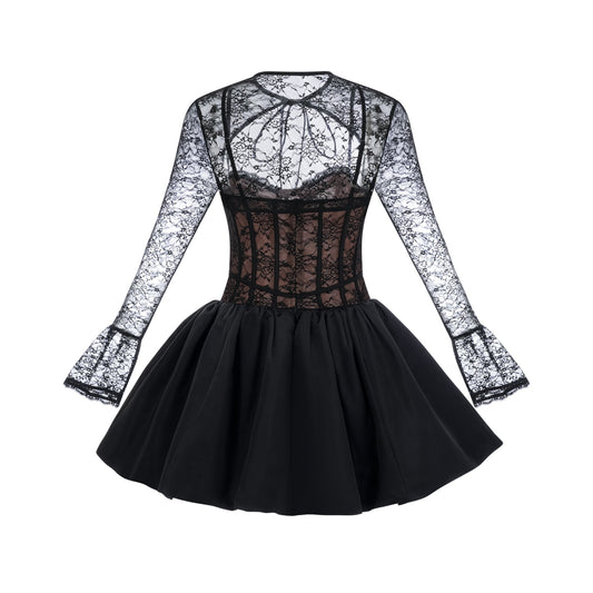 Louise black floral-lace vest & dress matching set