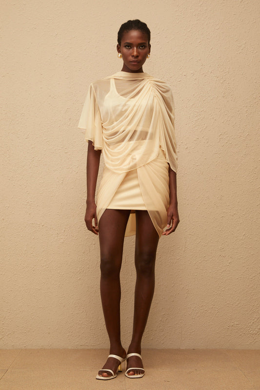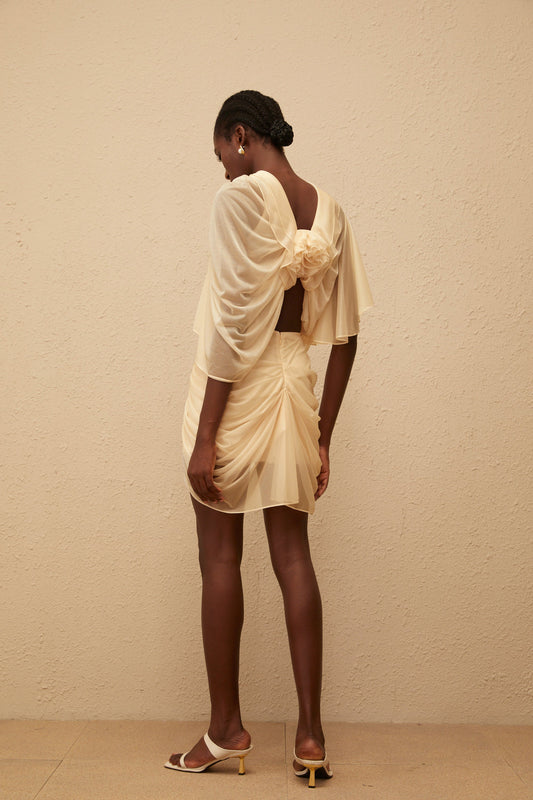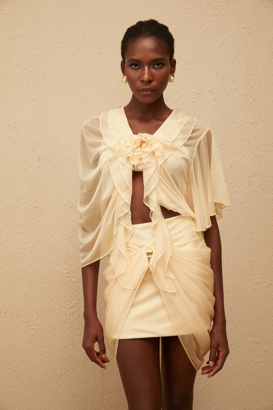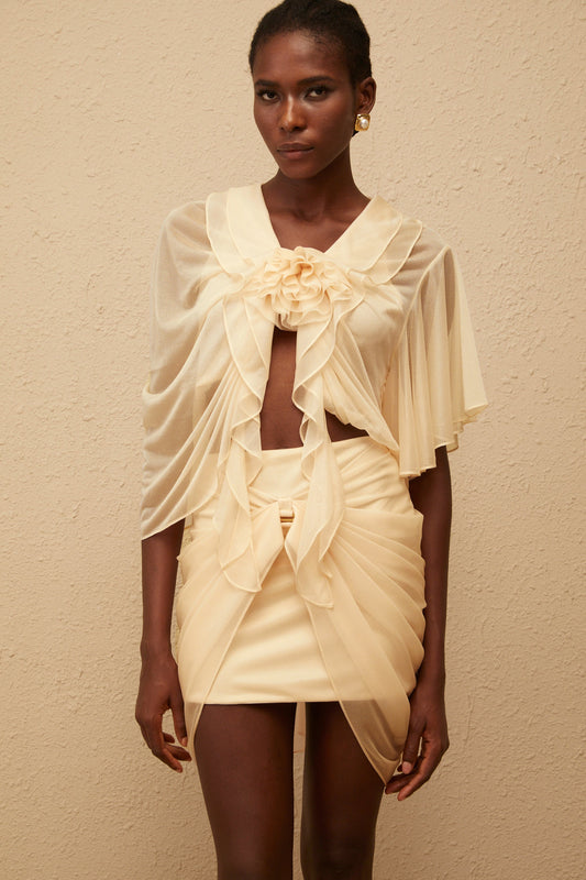 Pénombre Neutral Ruched Tulle Top & Skirt Set