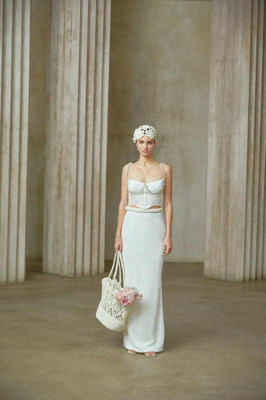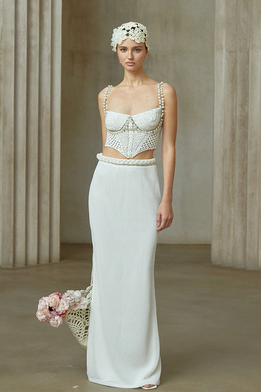 Prunelle Crochet Knit Two-Piece Top and Skirt Set