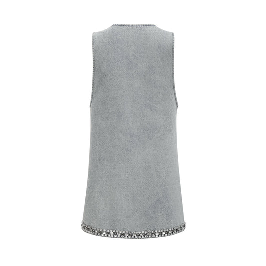 Daphné blue crystal sleeveless denim mini dress