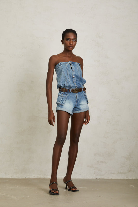 Marta Blue Faded Effect Denim Playsuit