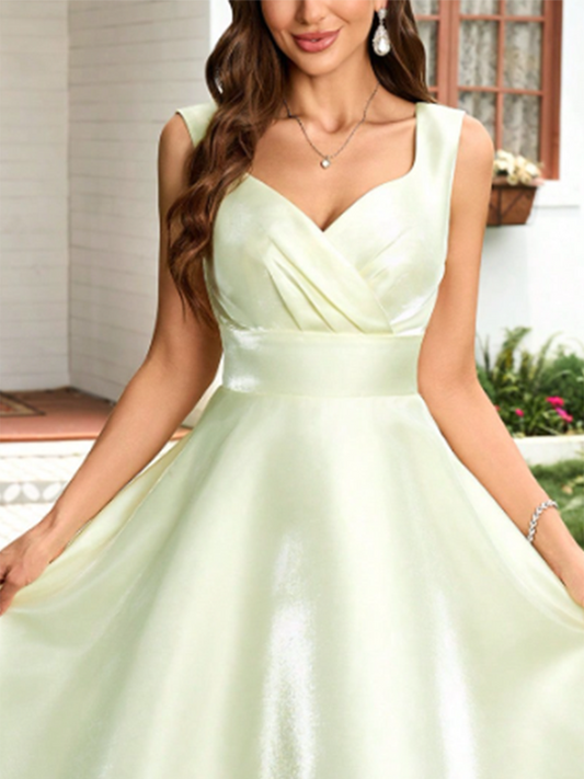 Product Name: Women’s Simple Satin Wide Strap Waist Midi Dress