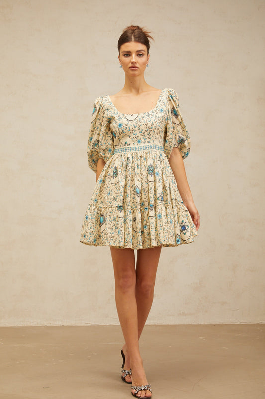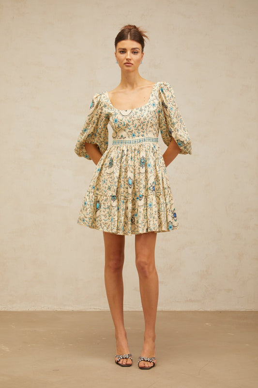 Odette neutrals floral-print pleated mini dress