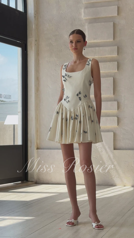 Ophélie White Butterfly Embroidered Mini Dress