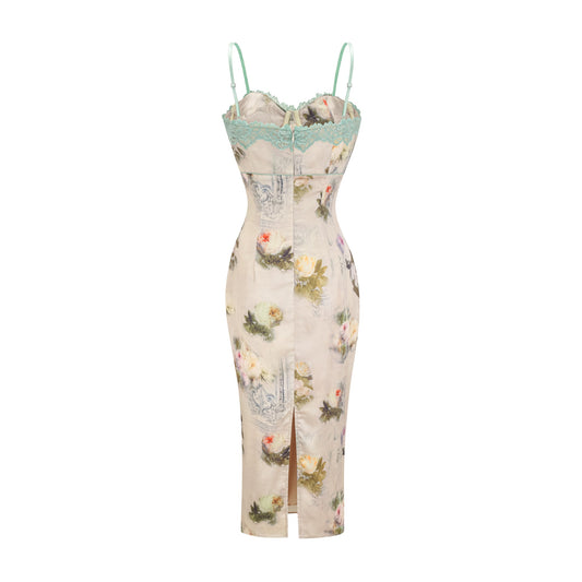 Sanne floral-print lace-trim midi dress