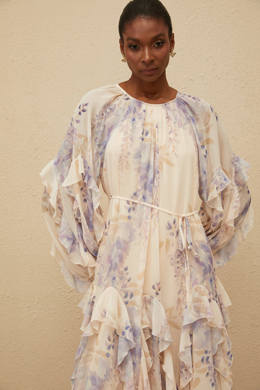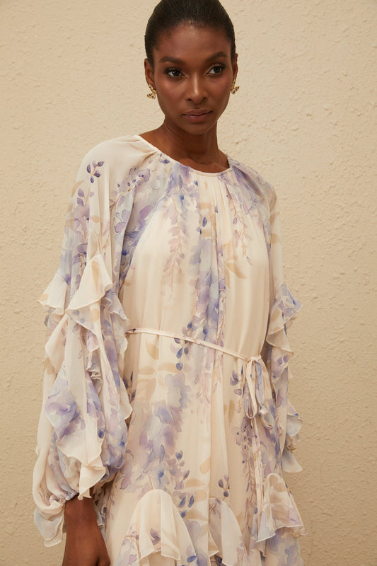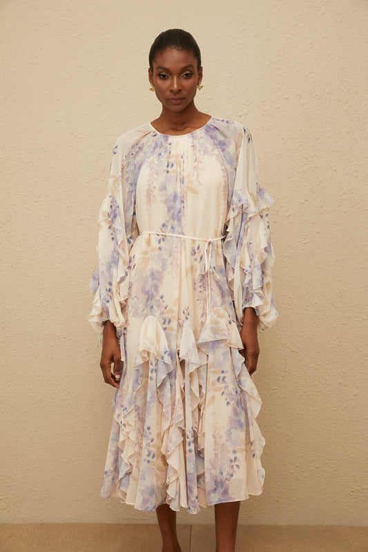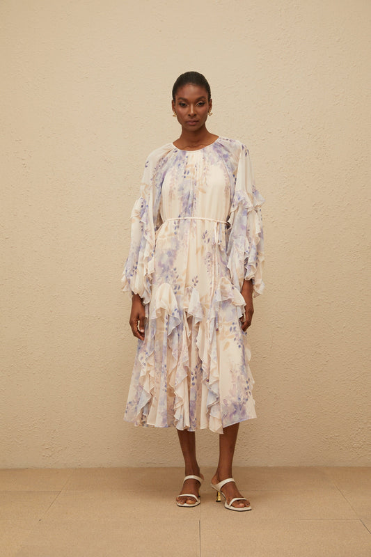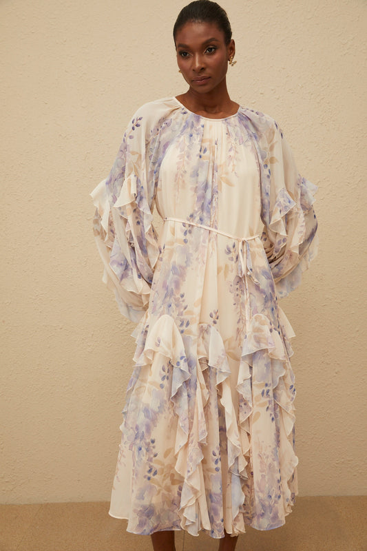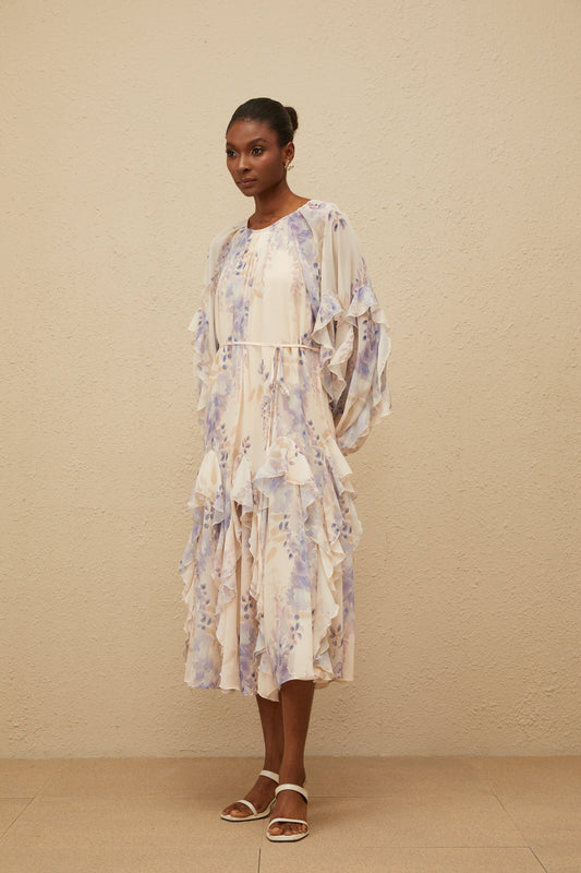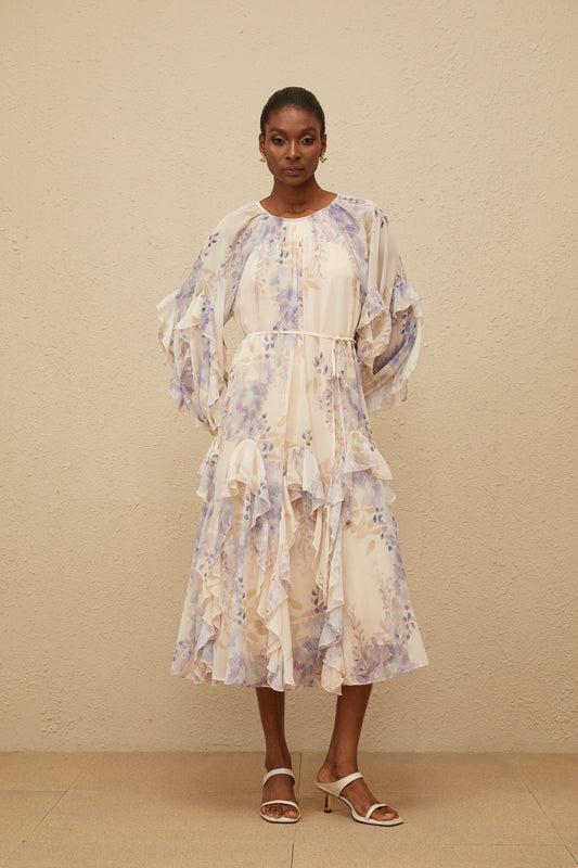 Yara Ruffled Floral Print Midi Dress