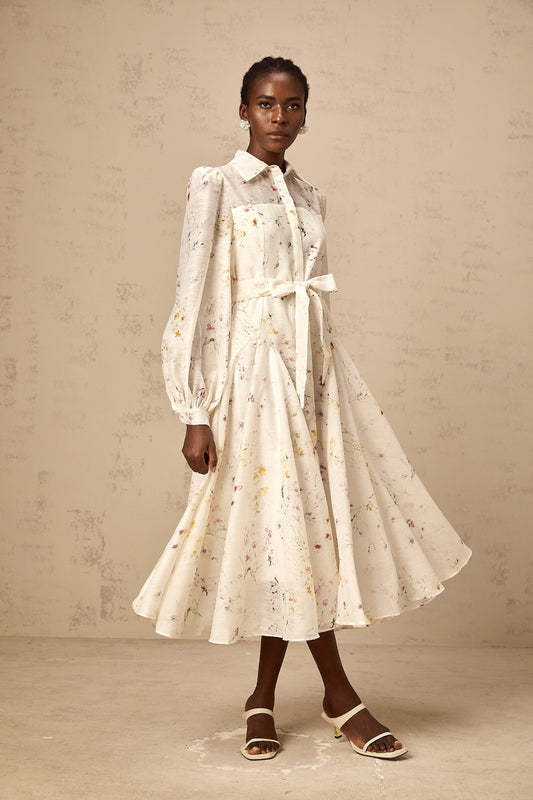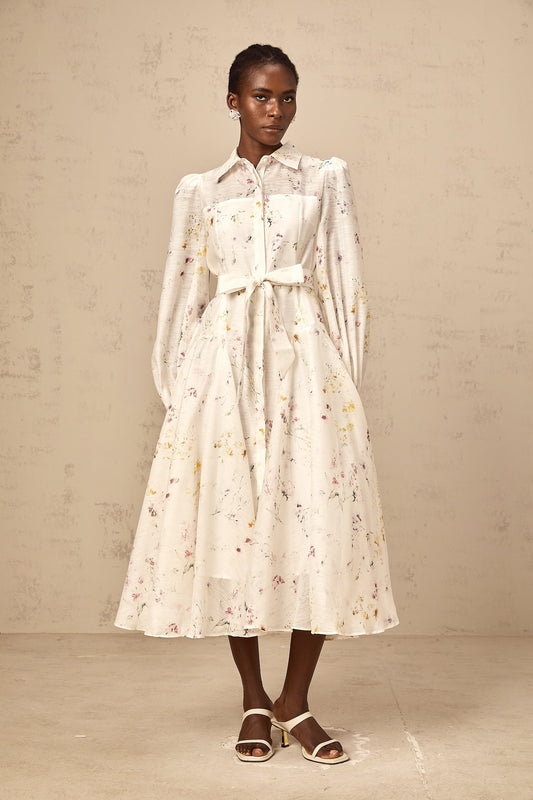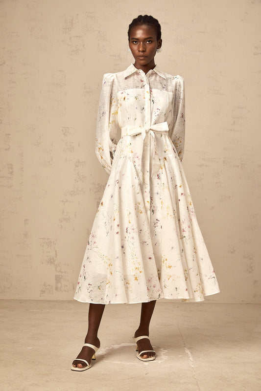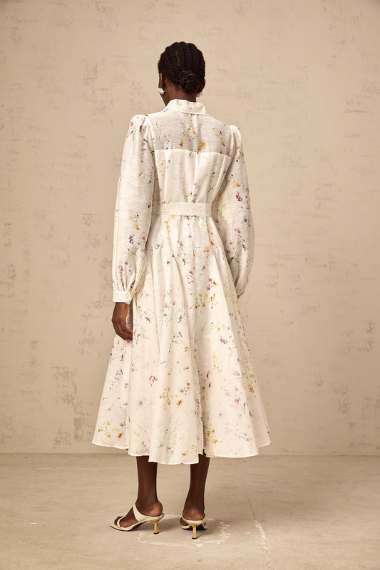 Zoé white floral-print tied midi dress
