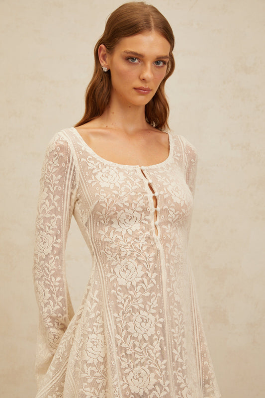 Céline White Flared Crochet Knit Mini Dress
