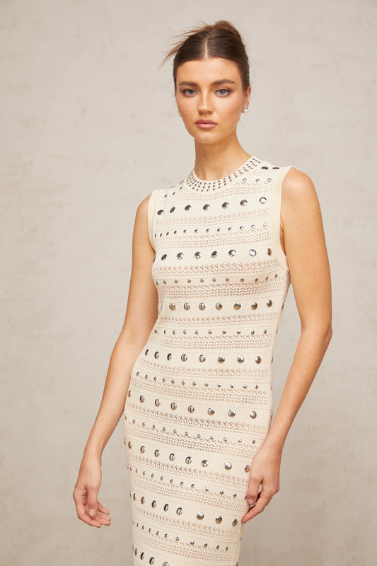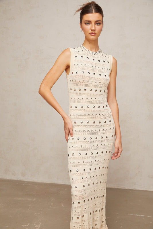 Chloé studded crochet-knit maxi dress in Neutrals