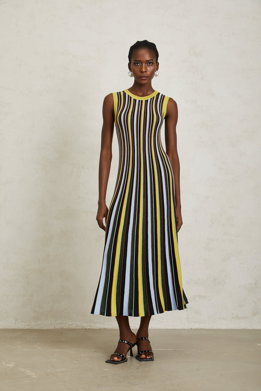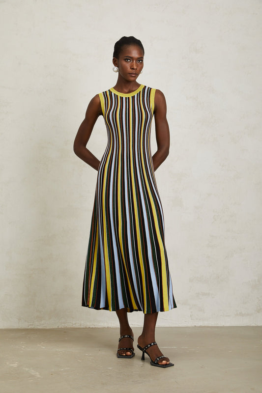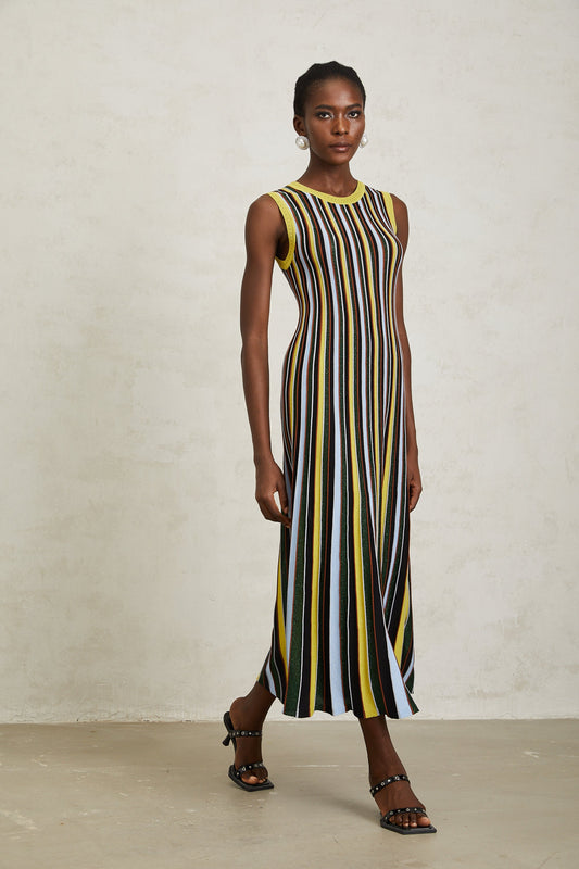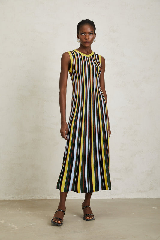 Clémence Yellow Vertical Striped Knit Midi Dress