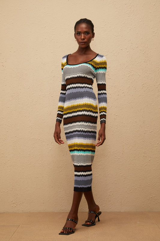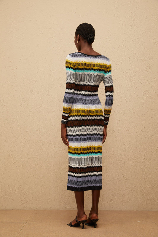 Frédérique Lilac Zigzag Woven Knit Midi Dress