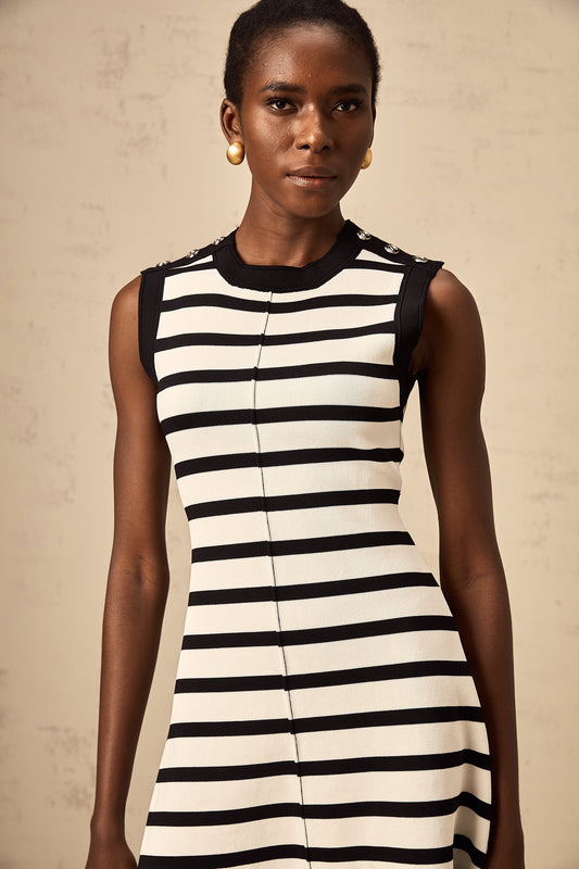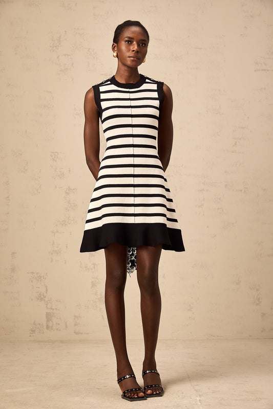Heloise black horizontal-striped knit mini dress