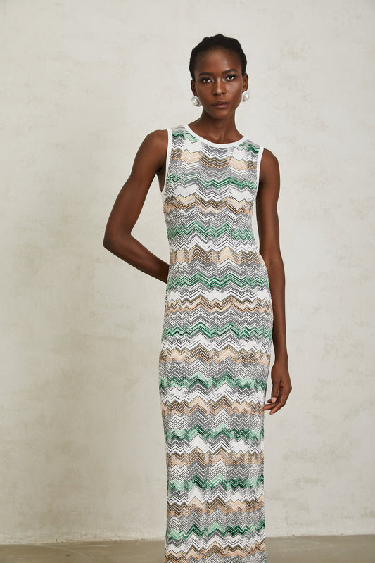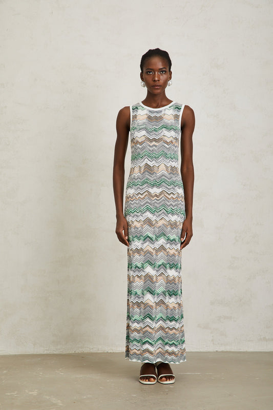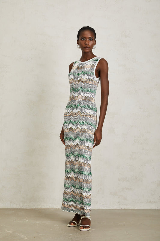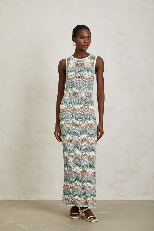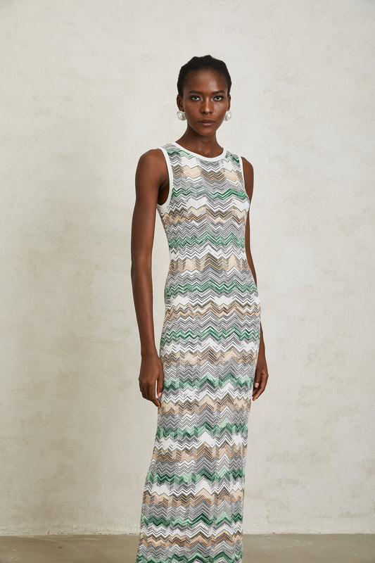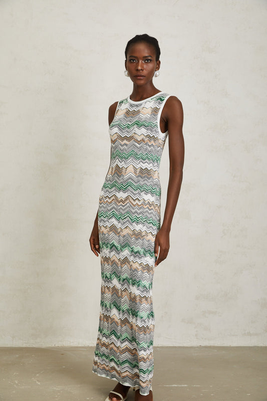Manon Green Zigzag Woven Knit Maxi Dress