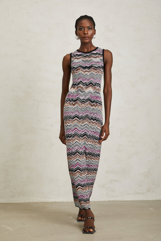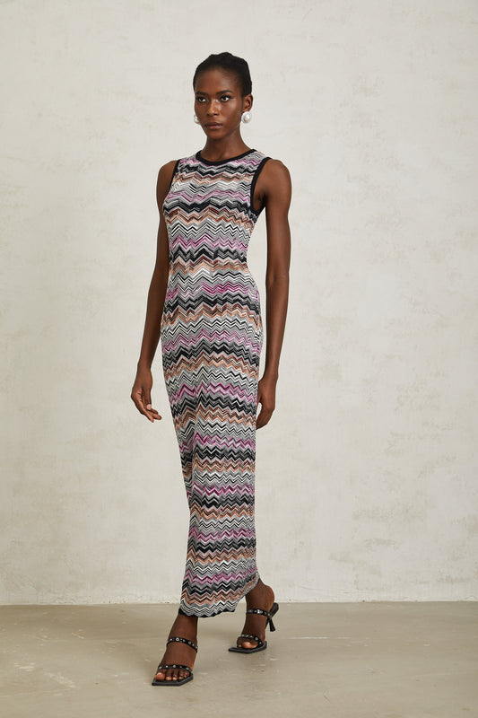 Manon Purple Zigzag Woven Knit Maxi Dress