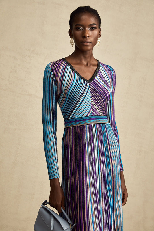 Mathilde metallic pleated midi dress in Blue