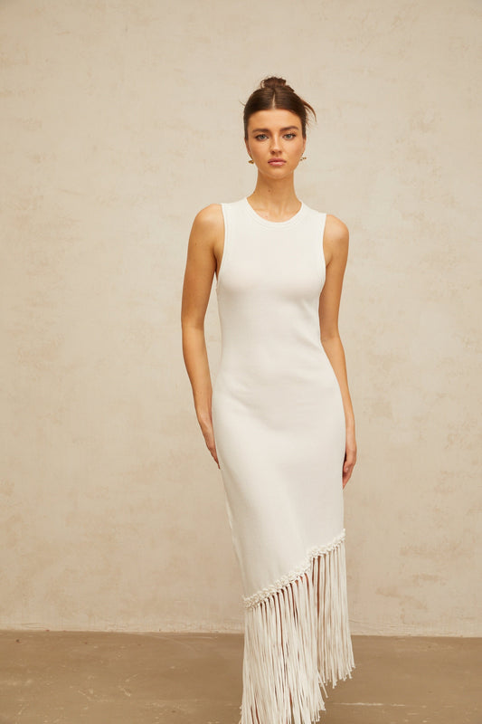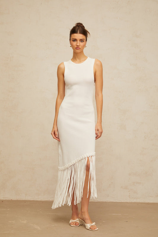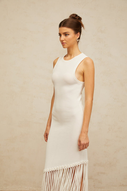 Mélisande white fringed-detail knit maxi dress