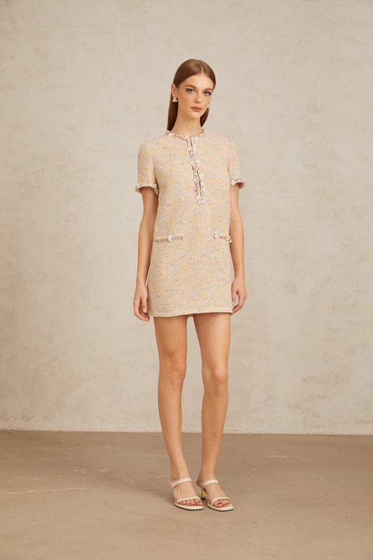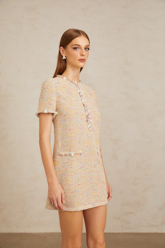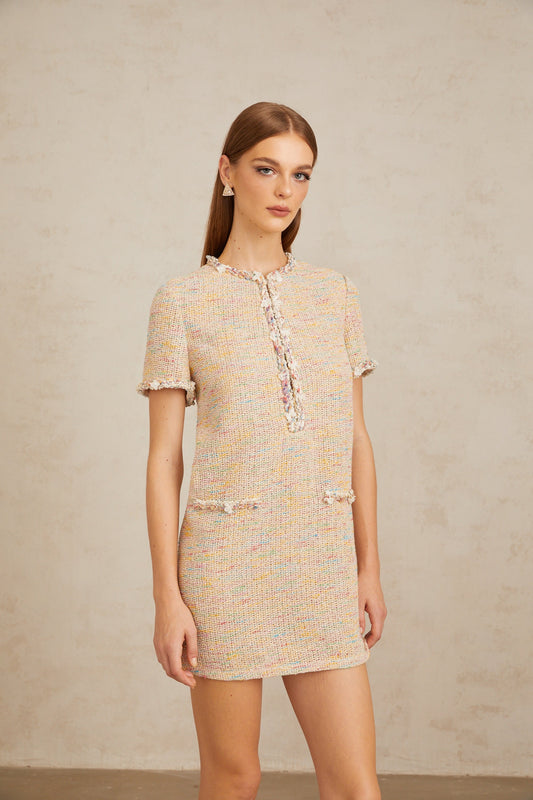 Palme Neutral Embellished Crochet Knit Mini Dress