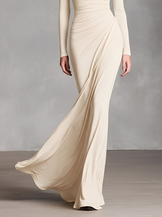 Women’s Cream Elegant Jersey One-Shoulder Ruched Mermaid Maxi Dress