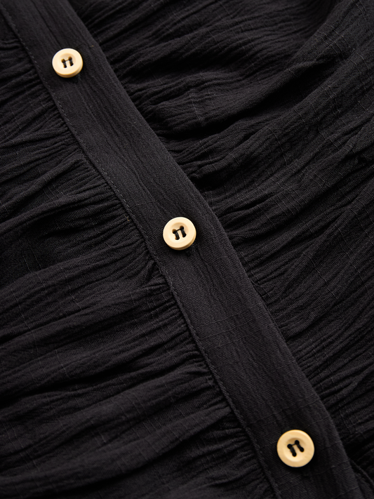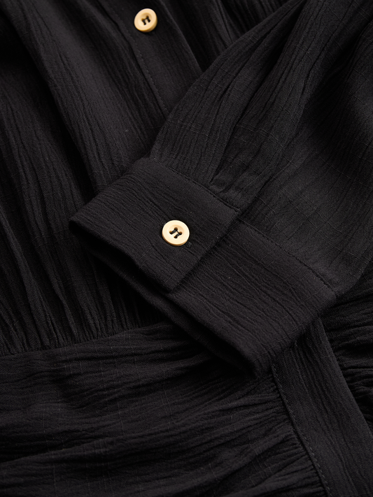 A graceful maxi dress crafted from soft imitation cotton and linen fabric, featuring elegant pleats, a classic lapel collar, and a single-breasted front. This dress blends breezy comfort with timeless, minimalist style for any occasion.