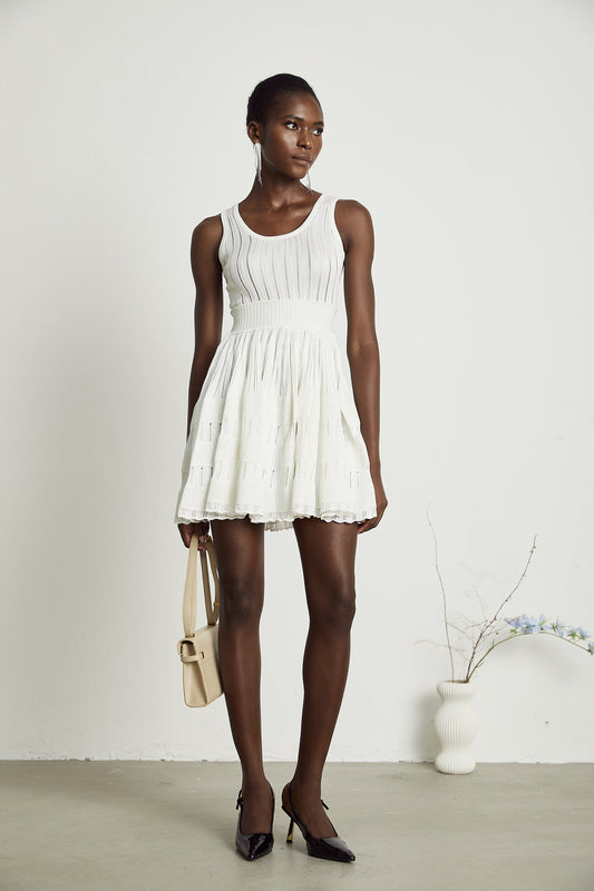 Noémie white cut-out pleated mini dress