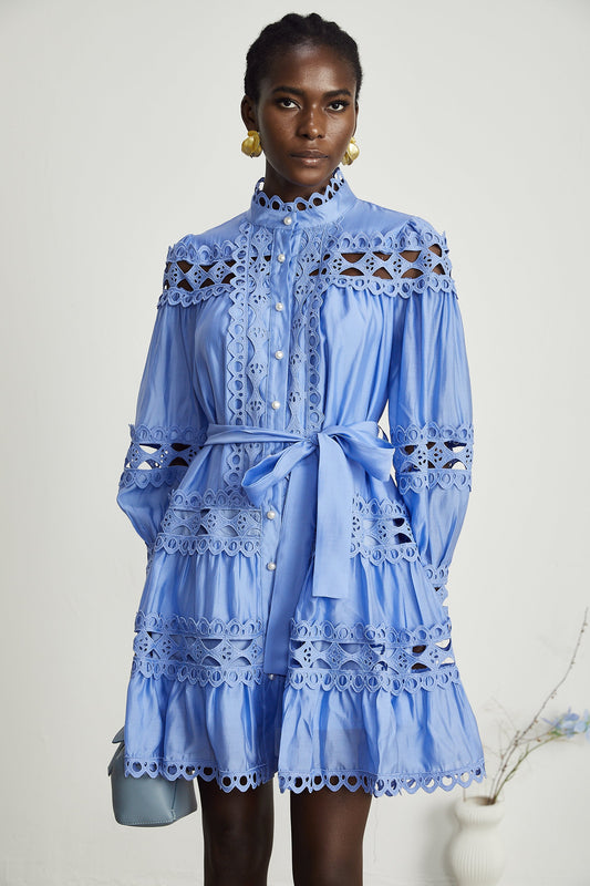 Nova blue cut-out belted mini dress