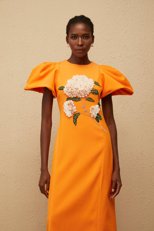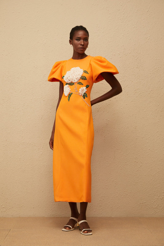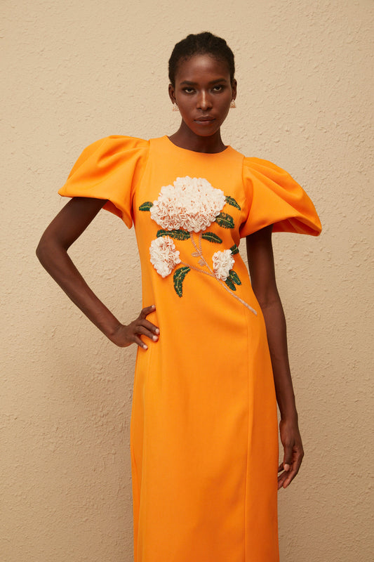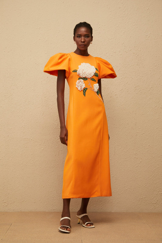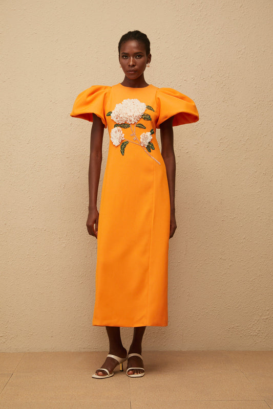 Yrjö Orange Floral Embroidered Midi Dress