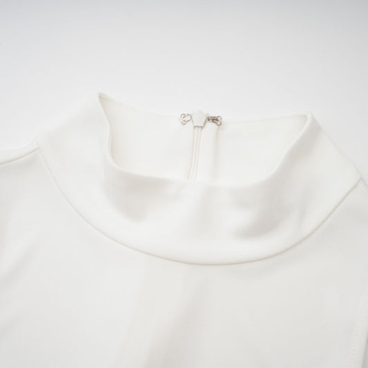 Mystérieuse White Turtleneck Draped Maxi Dress