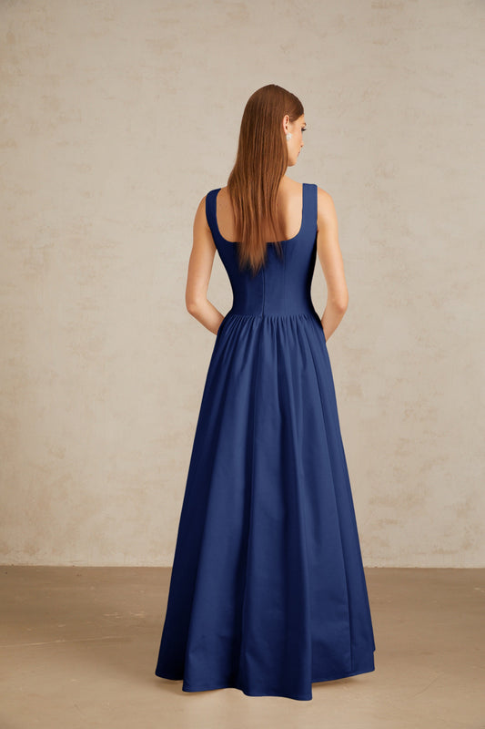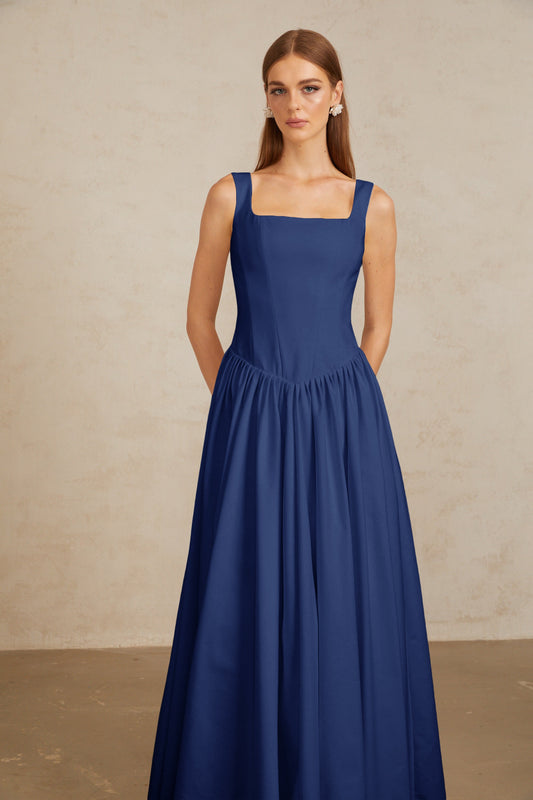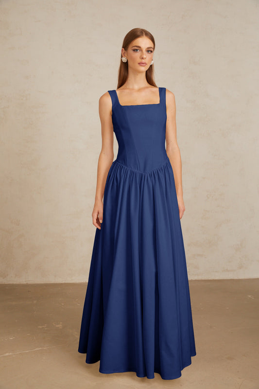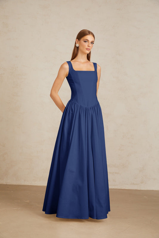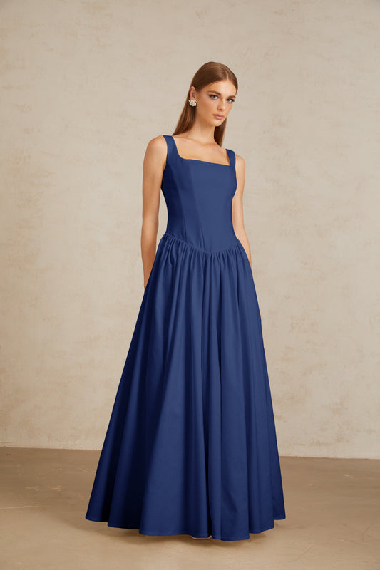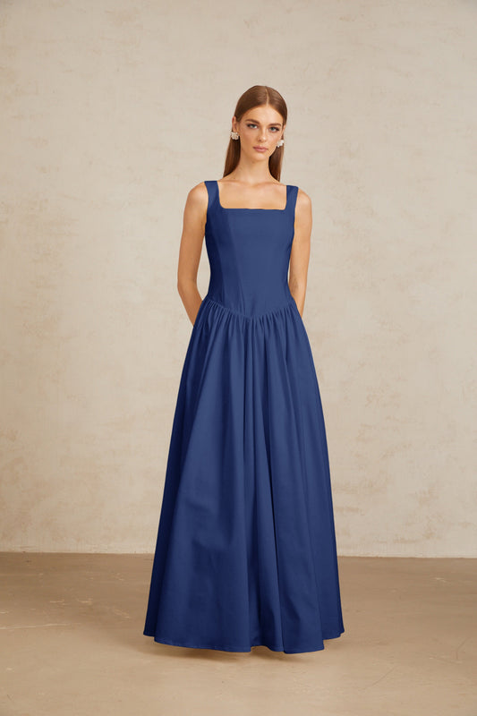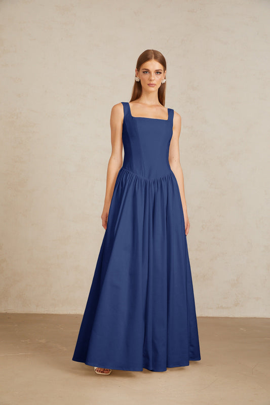 Sadie Blue Pleated Corset Maxi Gown