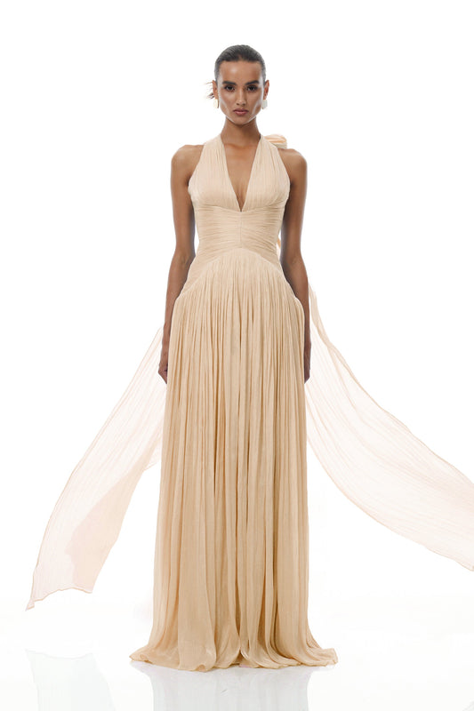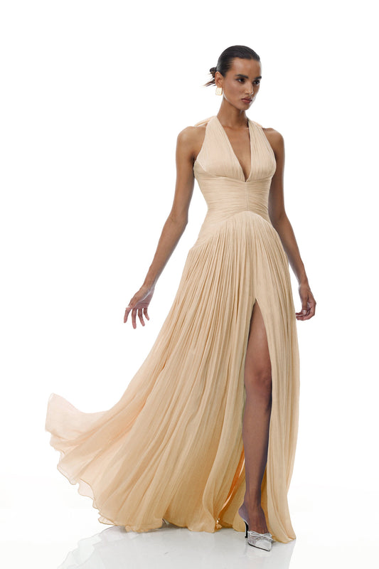 Térébenthine Neutral Glossy Gathered Maxi Dress