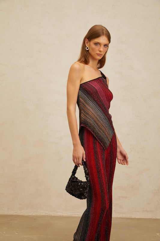 Amaryllis Red Sequin Striped Knit Matching Set