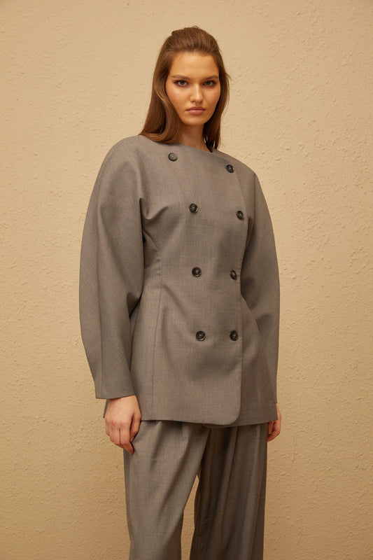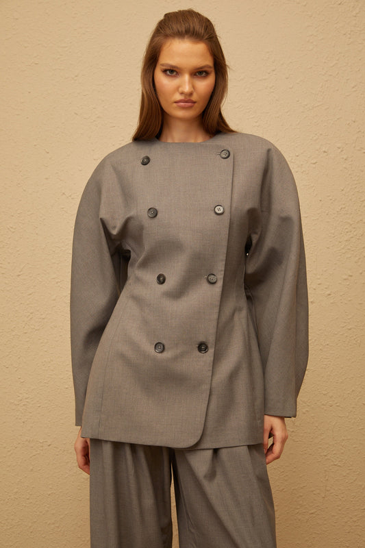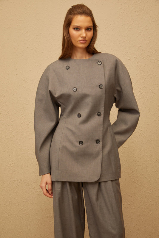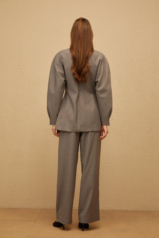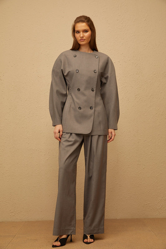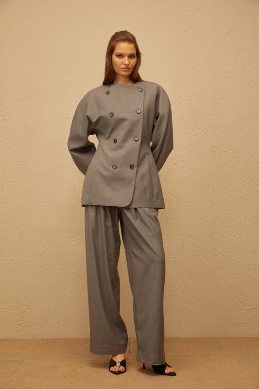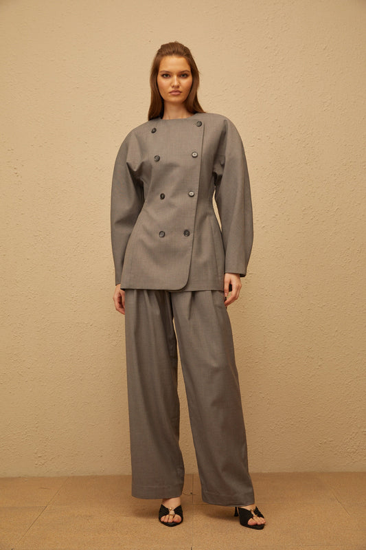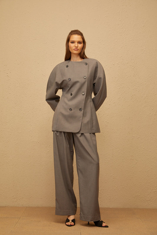 Clémence Grey Double-Breasted Coat & Trousers Set
