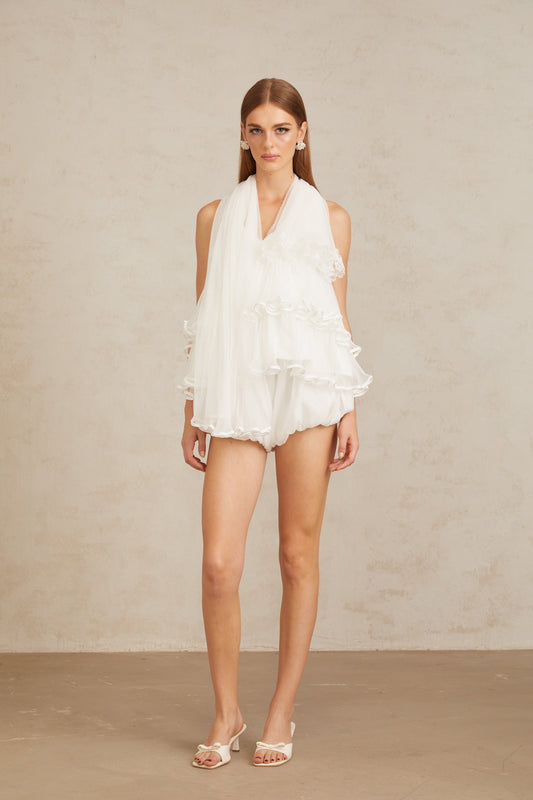 Ella White Ruffled Tulle Top & Shorts Co-ord Set